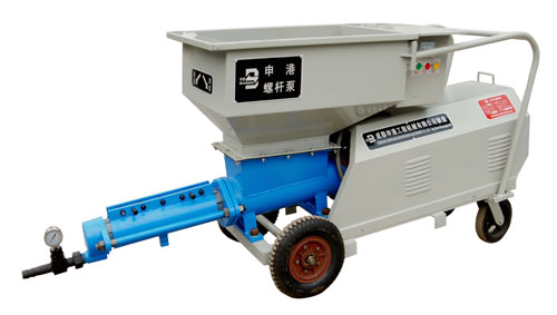 該泵結構新穎、構思獨特;避免了灌注稠漿較困難的不足,使用安全方便、效率高。本機主要由電動機減速器、輸漿體、增壓蝸桿、增壓定子、測壓、料斗、電控系統等組成,當用于噴護時,還包括噴射器,其特點如下: