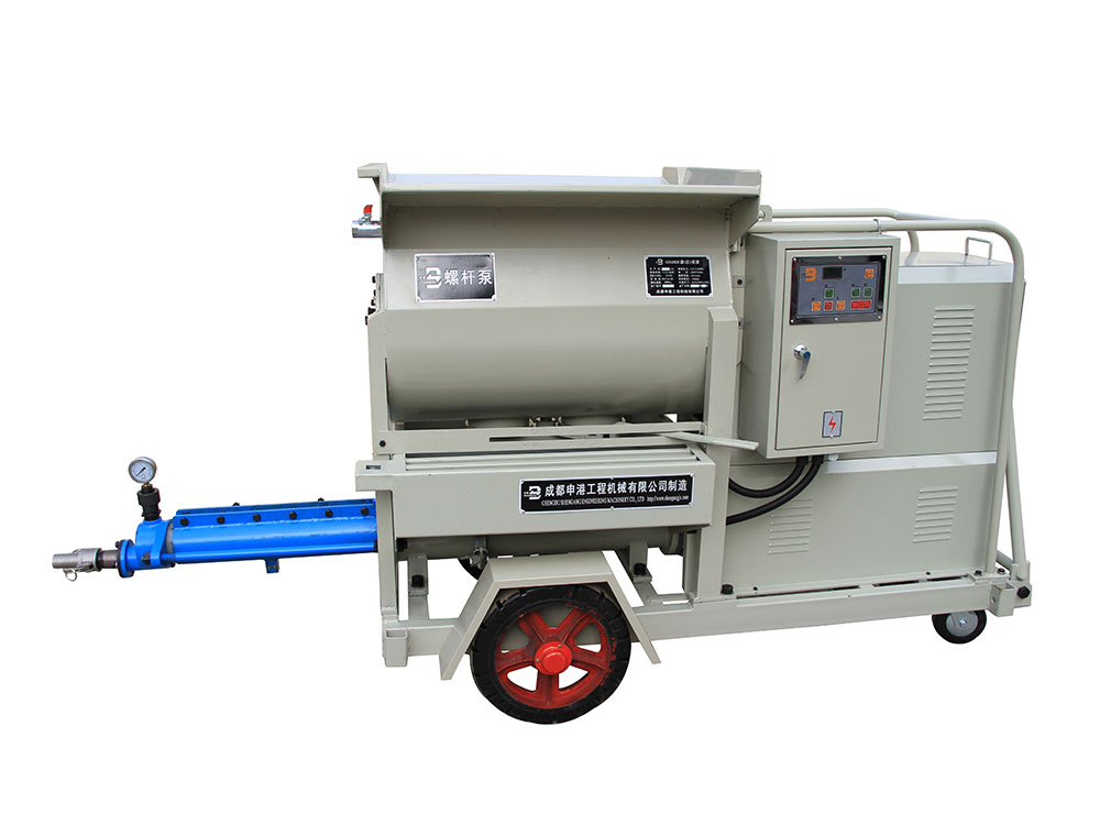 該泵結(jié)構(gòu)新穎、構(gòu)思獨(dú)特;避免了灌注稠漿較困難的不足,使用安全方便、效率高。本機(jī)主要由攪拌裝置、操作機(jī)構(gòu)、輸漿體、增壓蝸桿、增壓定子、測(cè)壓、料斗、電控系統(tǒng)等組成,當(dāng)用于噴護(hù)時(shí),還包括噴射器,其特點(diǎn)如下: