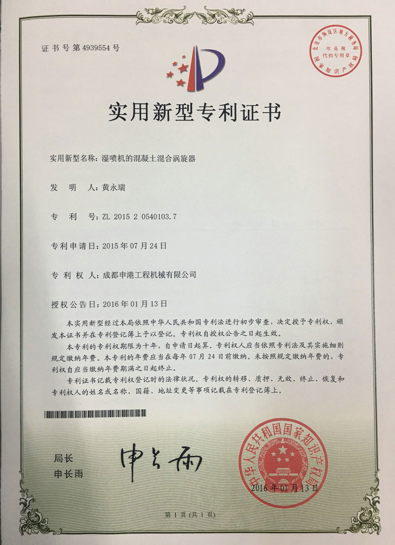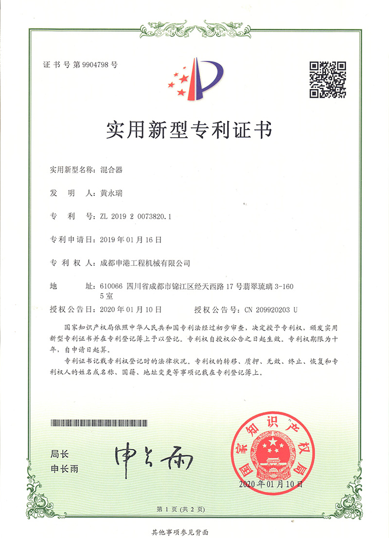 混合器專利證書